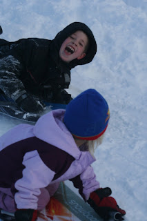 After wrestling, we picked up the Blundell's ( our god-cousins) and came home to have FUN! So, the kids had a great time playing together, and learning to take turns, (Meggie). We sure love our god-cousins!